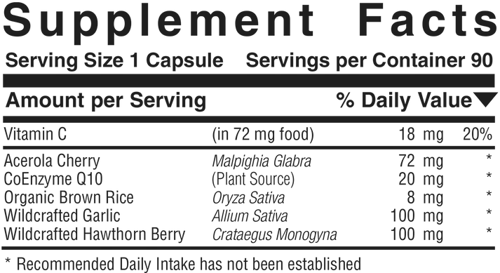 CoQ10-Cardio™ is a 100% vegan Food supplement that is intended to supply nutrients needed to maintain and support optimal cardiac muscle health. It supplies plant-source co-enzyme Q10, a nutrient that is important for healthy cardiovascular system function, along with other herbs.